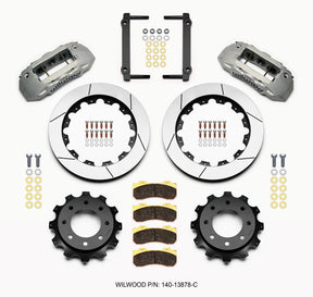 Wilwood's Tactical Extreme TX6R Big Brake rear kits are ultimate in braking performance for Truck, SUV and Armored Vehicles. Using TX6R radial mount six-piston calipers and massive 15.00" to 16.00" GT-60 directional vane Spec-37 alloy rotors, these kits deliver consistent stopping power and extreme duty durability under sustained high heat with this ready to bolt-on kit. The calipers are volume matched for compatibility with original equipment power brake system output. TX6R rear kits replace the factory disc brakes and use the OE parking brake assembly as a compliment to front big brake upgrades. Kits include radial mount caliper brackets, and all the necessary hardware to complete the installation. Braided stainless steel flex lines will need to be purchased for some applications.
