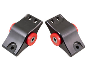 These mounts are semi-rigid by design. The harder durometer bushings efficiently transfer engine energy to the frame, improving strength and reliability.