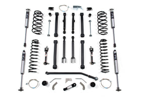 The rear kit comes with Glide-Ride coil springs, a rear track bar relocation bracket, ultimate sway bar disconnects, and heavy duty front upper adjustable and fixed length lower control arms for optimal travel.