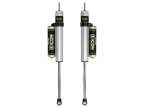 ICON Vehicle Specific (V.S.) 2.5 Aluminum Series shocks are designed and built to give your vehicle outstanding performance off-road and a smooth ride on the street. These shocks are configured specifically for each application in both length and damping tune. Like all ICON'S Shock Absorbers, V.S. 2.5 Aluminum Series shocks are 100% rebuildable and 100% revalveable. For piggyback and specific remote reservoir applications, ICON'S unique use of a 6061 billet aluminum manifold a few inches below the top cap of the shock creates an internal Bump Zone that when used creates an additional 20% of damping force. This additional force helps prevent harsh bottom outs and controls the suspension when compressing at high velocity. The ICON CDC Valve is an externally adjustable valve that restricts oil flow into the reservoir which creates 10 levels of compression damping force ranges. If you are looking for a more user defined tune, consider looking into the Omega Series bypass shocks.