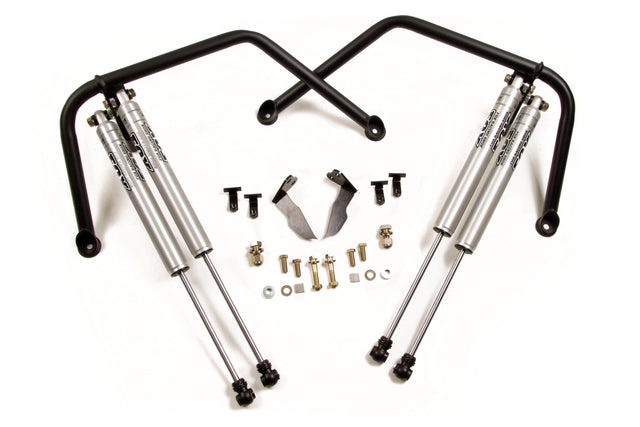 The dual shock hoop accepts both BDS-5500 shocks or Fox 2.0 performance series gas shocks. Add the BDS dual shock hoop setup to your late model lifted Ford Super Duty for improved max performance.