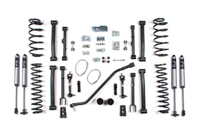 The lift kit includes front BDS Pro-Ride Coil Springs, a heavy duty adjustable front track bar that is utilized to recenter the front axle, bump stop extensions, stainless braided brake lines, sway bar quick disconnects to unlock the front suspension's potential to flex while maintaining quiet on road operation, and heavy duty front upper adjustable and fixed length lower control arms.