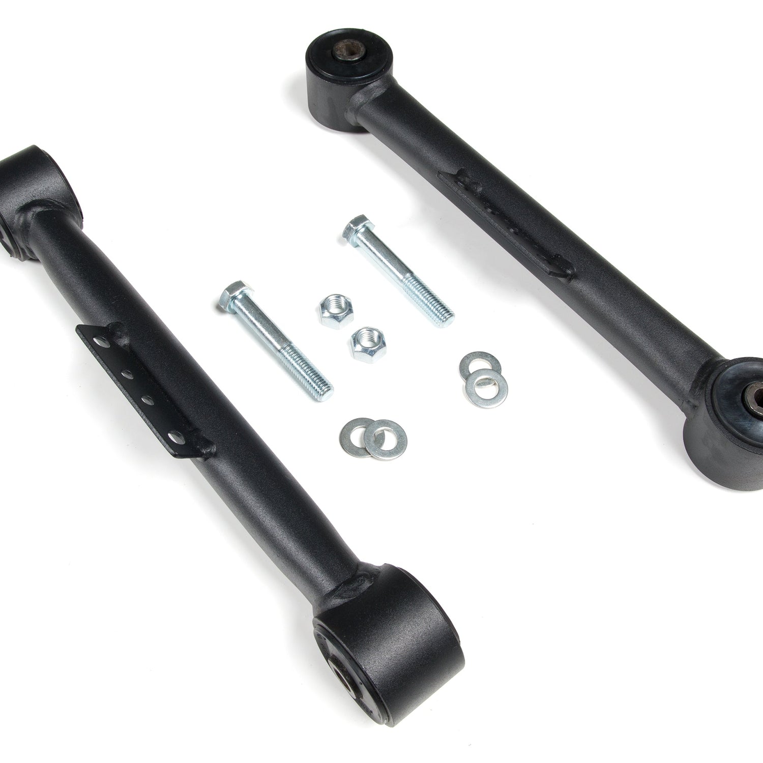Both ends are fully welded and feature preinstalled OE-style rubber bushings to ensure a long service free operation and better isolation of noise, vibration, and harshness (NVH). Arms come finished in a durable textured black powder coat.