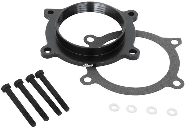 The AIRAID Throttle Body Spacer is designed to enhance off-idle torque from 800 rpm to approximately 3,000 rpm. The spacer utilizes it's unique, patented Helix Bore design to spin the incoming air charge as it passes through the throttle body spacer. The spinning air action boosts the velocity of the incoming air and contributes to better atomization of the air/fuel mixture as the air charge enters the combustion chamber. The end result is more part-throttle torque and improved mid-range power.
