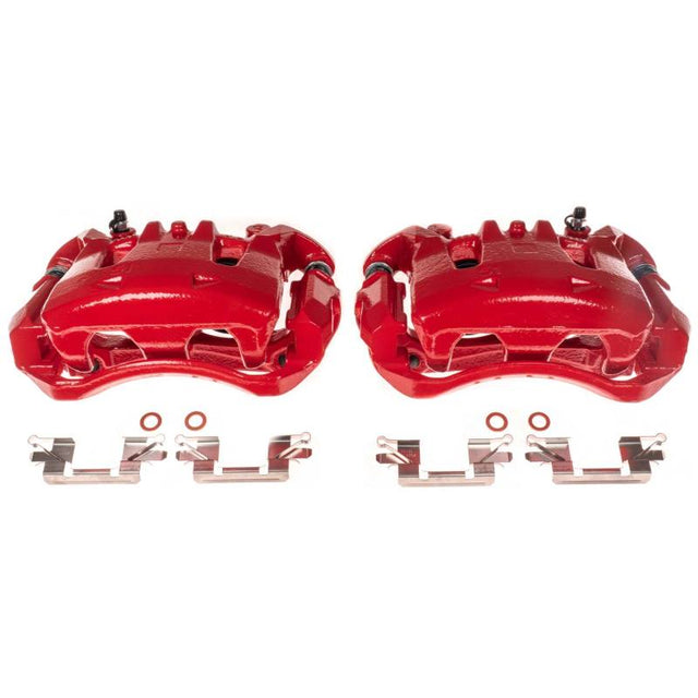 PowerStop Brake Calipers are made specifically with the enthusiast in mind. These calipers bolt directly in place of the stock calipers, and they look and perform great behind stock or custom wheels. PowerStop calipers and the brackets are remanufactured in our Chicago, IL facility and treated with a electrostatic high-temperature red powder-coating. The easy to clean powder coating helps to resist rust and corrosion thus extending the life of your calipers. PowerStop calipers are 100% pressure tested to verify piston operation and prevent any possible leaks from occurring. This ensures that every caliper is inspected for quality and safety. PowerStop caliper pairs are expertly assembled using new seals, caliper guide pins, dust boots, bleeder screws, stainless steel brake pad abutment clips and mounting brackets. High temperature EPDM rubber dust boots and premium silicone lubricant is used for a smoother operation and an extended life in extreme conditions. The color is a nice touch that really stands out behind your wheels!
