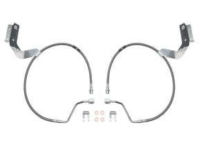 The ICON Vehicle Dynamics 2.5” Lift Extended Brake Line Kit for the 2017-2024 Ford F-250/F-350 Super Duty is an excellent upgrade for the front of lifted Super Duty Trucks. These high-quality stainless steel braided brake lines feature an extended length to prevent over extending of OE brake lines on trucks with 2.5-3.5” of front lift or the requirement to bend factory hard brake lines to work with drop brackets during installation of the suspension system. Their direct bolt-in design bolts directly to the OE hard lines and brake calipers without any additional hardware required, making installation a breeze.