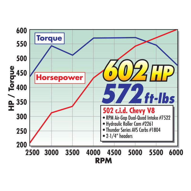 Edelbrock Rollin' Thunder Camshaft #2261 is designed for 396-502 V8 Mark IV and Gen V engines from 1967-95 and produce optimum torque from the low-end to the mid-range. Rollin' Thunder camshafts match with Performer manifolds for vehicles operating from off-idle to 5500 rpm. They are smooth idling cams for daily drivers, trucks, vans, RVs and 4x4s. You can expect a major improvement in throttle response and torque. In the manifold section you'll find torque graphs showing the power gains from Performer manifolds and Performer-Plus cams. All camshafts include flat tappet lifters (except for cams designed for use with stock roller lifters), assembly lube and instructions. This cam produced 611HP and 573 Ft Lbs of Torque when paired with Victor Jr. intake manifold #2902 and Victor Jr. 24 Degree cylinder heads #77485 on a GM ZZ-502 short block. Not for 1965-66 Big Block Chevy's running a grooved rear cam journal. Use with a high stall torque converter and stock ratio rocker arms only. Camshaft specifications: - Intake duration: 236 Degrees - Exhaust duration: 245 Degrees - Intake lift: .625" - Exhaust lift: .639" - Lobe separation: 112 Degree - Intake Center Line: 109 Degree - Vacuum: 10"