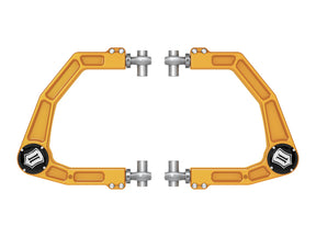 This ICON billet aluminum upper control arm kit is designed to improve the overall performance of the 2024 Toyota Tacoma and 2024 Toyota Land Cruiser 250 Series with corrected front-end geometry, increased camber and caster adjustment, and improved suspension component clearance. Constructed of CNC machined 6061 billet aluminum utilizing a hybrid H-beam cross-section that is lightweight and resists bending forces better than tubular arms. Replacing the OE ball joint with the all-new, serviceable, and rebuildable ICON Delta Joint PRO allows for full bump and droop travel of the front suspension while eliminating bind. FK Rod End 3/4” Heim joints provide precise and smooth function throughout the range of travel while ICON’s signature double adjuster sleeve allows for on-vehicle camber and caster adjustment. An all-new gold anodized finish matches ICON shock absorbers for a splash of color in the wheel well and provide a custom look to any build. Included with all components and hardware necessary for a complete install, these billet UCAs are the perfect front end upgrade for your 2024 Toyota Tacoma or Toyota Land Cruiser.