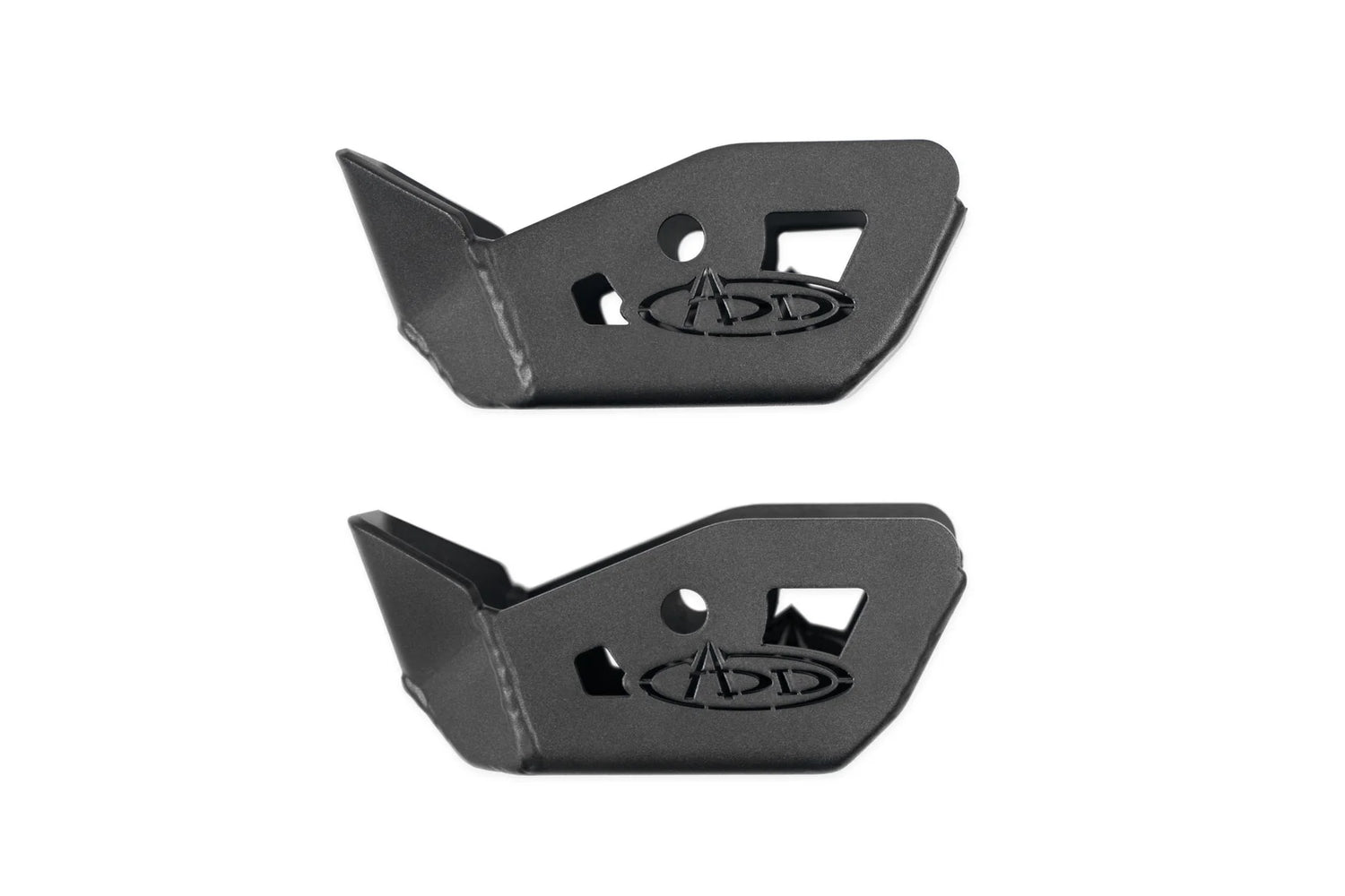 The lowest hanging fruit at the rear of your truck are your shocks. Our Rear Shock Guards protect the shock mount and shock bolt from damage when sending it off-road. The skid plate features a drafted leading face that helps deflect harsh impacts. They feature a heavy duty 3/16-inch construction, and are finished in a durable 2-stage hammer black powder coat. And as always, they are fully bolt-on and Made in America.