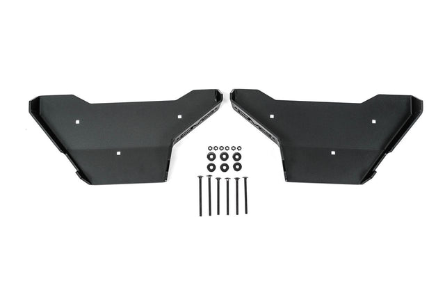 Our skid plates are designed to protect your rig’s control arms from obstacles. The skids feature a double thick front end and carriage bolt hardware. They are made from steel, and they are finished in a micro-texture black powder coat. The skid plates are fully bolt-on.