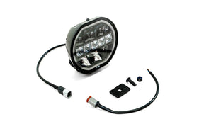 Our Round Lights can be paired with light brackets or off-road bumpers/bull bars with round light mounts. Our lights feature a white and amber halo light, and a flood and spot light pattern. The main LED lights produce 3,600 lumens, and they are rated at 50,000 hours of use. Our lights are IP 68 rated, and they feature a weather resistant plug. The lights produce a bright white (5700K) color. The lights are made from a shatterproof UV resistant polycarbonate lens and an aluminum housing with a satin black powder coat finish. They feature driving and off-road modes.