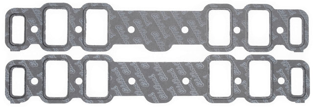 Edelbrock part #7284 Intake Gaskets for 1965-76 400-425-455 Oldsmobile engines allow for optimum flow and performance. Any gasket can create a seal, but a good gasket can do it with less clamping force, and for a longer period of time. The new MP-2N Micropore technology does not use solvents making our gaskets environmentally friendly. Impervious to most chemicals, this synthetic fiber composite provides a high recovery under load. This means that when compressed, the gasket will conform to any imperfections on the sealing surface even using lower flange pressures. A nitrile bead around each port opening makes the seal even better.
