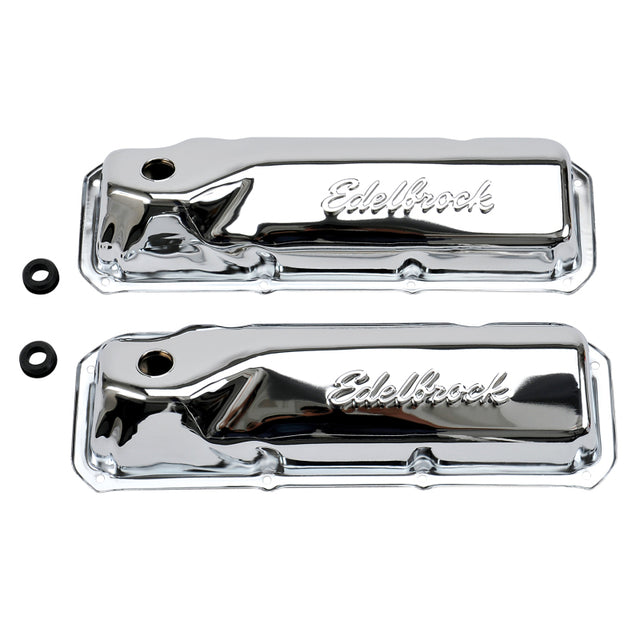 The Edelbrock #4461 Signature Series Valve Covers are designed for Ford 351M-400 and 351C V8 applications. Engineered for function and styled for great looks, Signature Series valve covers have stock-style breather baffles that prevent oil passage to the PCV valve. These quality valve covers accept all emissions equipment, including PCV valve holes. Rubber grommets for the breather and PCV valve holes are included. Matching breathers sold separately.