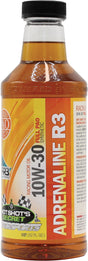 ADRENALINE® R3 10W-30 was formulated for the toughest applications in racing. The formulas are based on 100% pure poly-α olefin (PAO) Group IV synthetic oil that requires a very small amount of viscosity improvers to meet the weight specifications. The infusion of our patented FR3 Nano Technology® and high zinc additive package extends the performance and anti-wear protection to levels unmatched by any other race oil on the market. The result is an oil that has increased oxidation and thermal stability, deposit and sludge prevention, reduced foaming and oil breakdown, high wear resistance and most importantly, horsepower gains. In dyno testing, ADRENALINE® R Series Oils have proven performance gains of over 3.1% compared to the leading national brand race oil.