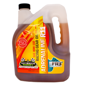 ADRENALINE® R11 80W-110 gear oil was formulated for the toughest applications in racing for a higher viscosity oil. The formulas are based on 100% pure poly-α-olefin (PAO) Group IV synthetic oil that requires a very small amount of viscosity improvers to meet the weight specifications. The infusion of our patented FR3 Nano Technology® and high zinc additive package extends the performance and anti-wear protection to levels unmatched by any other gear oil on the market. The result is a gear oil that has increased oxidation and thermal stability, deposit and sludge prevention, reduced oil breakdown, high wear resistance and longer drain intervals.
