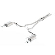 Ford Racing has partnered with industry leader Borla(R) Exhaust to offer the first in a series of Ford Racing by Borla(R) systems for the new 2015 Mustang. This cat-back system is constructed from ultra-smooth mandrel bent 300-series stainless steel tubing that is designed and fit to Ford Racing specs. This 2.5" cat-back exhaust system will give you an aggressive muscle car sound. This cat-back exhaust system with integral X-pipe bolts directly to the stock factory catalytic converters, making your Mustang 100% emission compliant. These tuned stainless steel mufflers with 4" chrome-plated stainless steel tips not only sound great but look great too.
