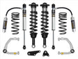 ICON Vehicle Dynamics 2024-2025 Toyota Tacoma suspension systems are designed with maximum performance and the serious driver in mind. ICON engineers primary focus is to increase wheel travel and damping ability, which translates into outstanding vehicle control and ride quality both on- and off-road. This Stage 3 system includes vehicle-specific tuned 2.5 Series coilover shocks featuring internal reservoirs for exceptional cooling properties and ICON-engineered coil springs for superior vehicle feel through the range of travel. These coilovers are height adjustable from 1.25-3 of front lift height over stock, allowing the use of larger, more aggressive wheel and tire combinations. The front differential drop brackets and ICONs specifically designed coilover lengths maximizes the available front suspension travel and prevent CV bind. Additionally, polyurethane differential mounting bushings replace the soft OE bushings to help limit differential movement under load. The ICON billet aluminum upper control arm kit is designed to improve the overall performance of the new Tacoma with corrected front-end geometry, increased on-vehicle camber and caster adjustment, and improved suspension component clearance. Replacing the OE ball joint with the all-new, serviceable, and rebuildable ICON Delta Joint PRO allows for full bump and droop travel of the front suspension while eliminating bind.