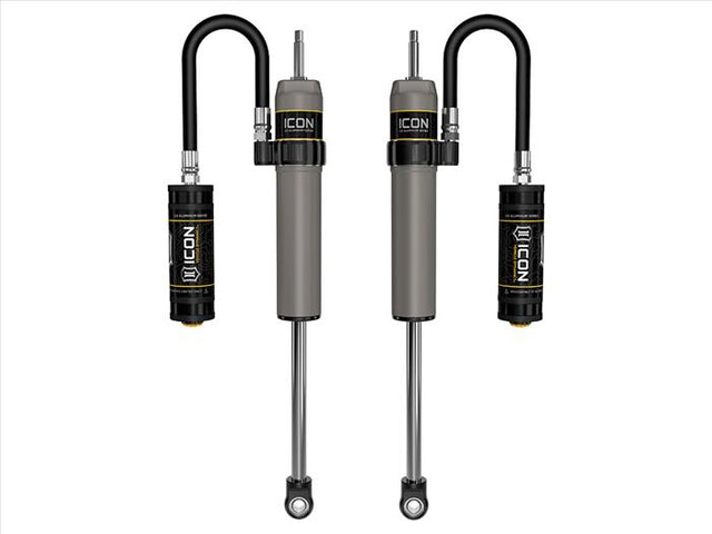 ICONs 2.5 Aluminum Series shocks are designed and built to give your vehicle outstanding performance off-road and a smooth ride on the street. With a truly vehicle-specific design, these shocks are configured specifically for each application in both length and damping tune. Featuring one-piece impact extruded aluminum cylinders, these 2.5 Aluminum Series shocks offer lighter weight, improved corrosion resistance, and a more uniform finish than traditional plated steel cylinders. Like all ICON shock absorbers, these 2.5 Aluminum Series shocks are 100% rebuildable and 100% revalveable. Remote reservoirs greatly increase shock oil volume and heat dissipation surface area to resist overheating and cavitation under hard use, which can lead to damper fade. ICONs unique use of a 6061 billet aluminum manifold a few inches below the top cap of the shock creates an internal Bump Zone that when used creates an additional 20% of damping force. This additional force helps prevent harsh bottom-out conditions and controls the suspension effectively when compressing at high velocity. If you are looking for a more user-defined tune, consider looking into the Compression Damping Control Valve (CDCV) shocks.