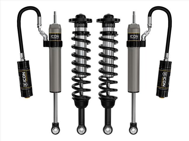 This Stage 1 system features the 2022-2023 Toyota Land Cruiser 300 Series VS 2.5 Series internal reservoir front coilovers. These adjustable coilovers allow up to 1-3 of lift height adjustability over stock, allowing the use of larger, more aggressive wheel and tire combinations. ICONs Vehicle-specific shock length and valving along with the larger 2.5 shock body and increased piston area over stock components yield the maximum travel possible along with superior ride quality and suspension performance both on- and off-road.
