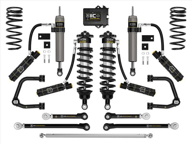 The ICON Vehicle Dynamics Stage 3 3.0 complete suspension system for the 2023-2024 Toyota Sequoia builds upon the Stage 12 2.5 suspension system with the upgrade to 3.0 Series CDEV front coilovers. This system offers improved on- and off-road performance, with active electronic shock damping adjustment, as well as improved alignment specs, improved rear articulation, and increased front-end lift height range for a proper stance and fitment of up to 35" tires.