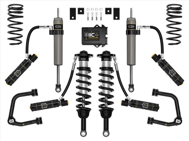 The ICON Vehicle Dynamics Stage 11 complete suspension system for the 2023-2024 Toyota Sequoia Is the first stage to include CDEV equipped 2.5 Series coilovers and rear shocks. This system offers improved on- and off-road performance, with active electronic shock damping adjustment, as well as improved alignment specs and increased front-end lift height range for a proper stance and fitment of up to 35" tires. Focus on driving and let ICON Intelligent Control (IIC) read the terrain and make near-instant adjustments via the Compression Damping Electronic Valve (CDEV) at each individual shock. Control the system wirelessly through the IIC app on your phone and once configured the system functions without driver input.