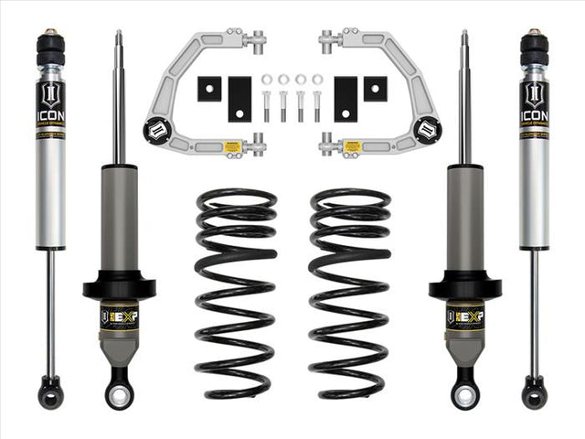The ICON Vehicle Dynamics Stage 2 complete suspension system for the 2023-2025 Toyota Sequoia builds on ICON's 2.5 EXP Shock Kit with the addition of billet front upper control arms, providing proper alignment at any ride height, improved on- and off-road performance as well as front-end lift and leveling for a proper stance and fitment of up to 35" tires. This system features the innovative new 2.5 EXP Series coilover shocks and sway bar drop kit for the front of the truck along with dual rate coil springs and our proven 2.0 nitrogen charged monotube shocks with internal reservoirs for the rear.