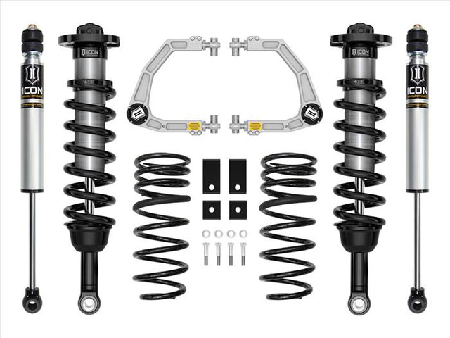 The ICON Vehicle Dynamics Stage 4 complete suspension system for the 2023-2025 Toyota Sequoia builds upon the ICON threaded-body V.S. 2.5 Series Coilovers with the addition of adjustable billet aluminum front upper control arms. This system offers improved on- and off-road performance as well as improved alignment specs with front-end lift and leveling for a proper stance and fitment of up to 35" tires. To compliment the internal reservoir coilover shock and billet control arm combo, a sway bar drop kit for the front of the truck is included along with dual rate coil springs and our proven 2.0 nitrogen charged monotube shocks with internal reservoirs for the rear.