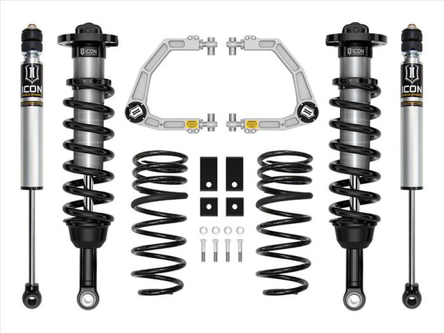 The ICON Vehicle Dynamics Stage 4 complete suspension system for the 2023-2025 Toyota Sequoia builds upon the ICON threaded-body V.S. 2.5 Series Coilovers with the addition of adjustable billet aluminum front upper control arms. This system offers improved on- and off-road performance as well as improved alignment specs with front-end lift and leveling for a proper stance and fitment of up to 35" tires. To compliment the internal reservoir coilover shock and billet control arm combo, a sway bar drop kit for the front of the truck is included along with dual rate coil springs and our proven 2.0 nitrogen charged monotube shocks with internal reservoirs for the rear.