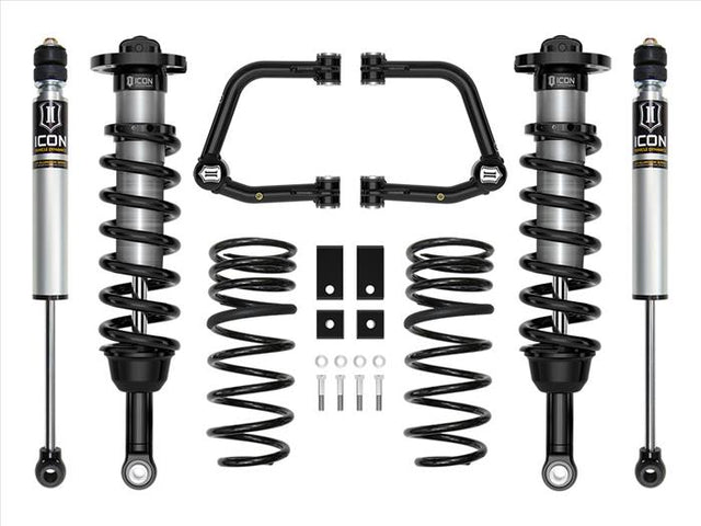 The ICON Vehicle Dynamics Stage 4 complete suspension system for the 2023-2025 Toyota Sequoia builds upon the ICON threaded-body V.S. 2.5 Series Coilovers with the addition of ICON tubular front upper control arms. This system offers improved on- and off-road performance as well as improved alignment specs with front-end lift and leveling for a proper stance and fitment of up to 35" tires. To compliment the internal reservoir coilover shock and tubular control arm combo, a sway bar drop kit for the front of the truck is included along with dual rate coil springs and our proven 2.0 nitrogen charged monotube shocks with internal reservoirs for the rear.