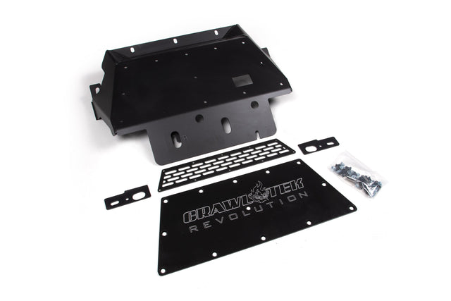 Add protection and styling to the front end of your Bronco with a front skid plate from CrawlTek. Available with your choice of standard skid or with an integrated winch mount, these skids are built from 3/16" heady duty steel with a 3/16" aluminum center section for reduced weight and optimal corrosion resistance. They offer increased strength and protection for vital front end parts.