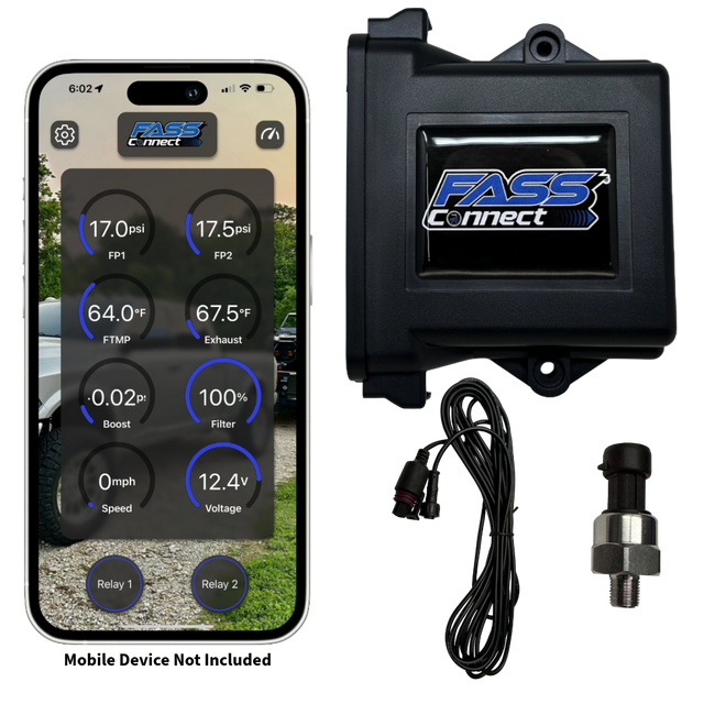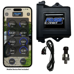 This kit includes the FASS Connect ECU and a 0–100 PSI fuel pressure sensor (additional accessory sensors available separately).