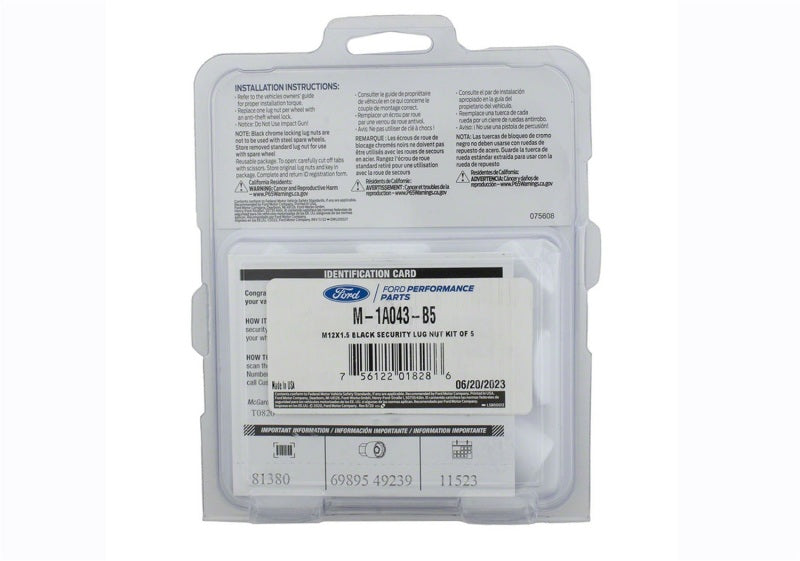 Ford Racing M12X1.5 Black Security Lug Nut - Set of 5