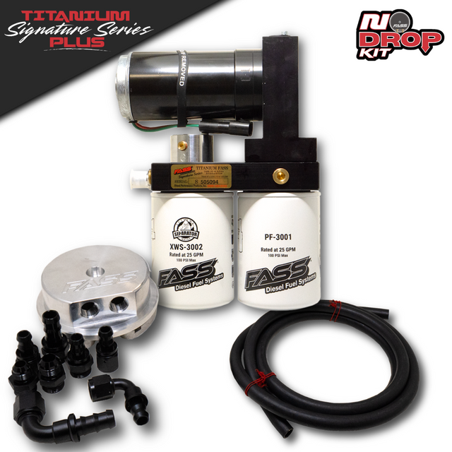 Installing a Titanium Signature Series Plus Fuel System has never been easier, or more affordable. Designed to simplify installation, No-Drop Plus Kits include our Fuel Sump—which prevents the need for removing your fuel tank. Better still, No-Drop Plus Kits offer significant savings over buying a Titanium Signature Series Fuel System and Sump Kit separately! These Kits include everything you need for a simple, straightforward FASS installation—and nothing you don't.