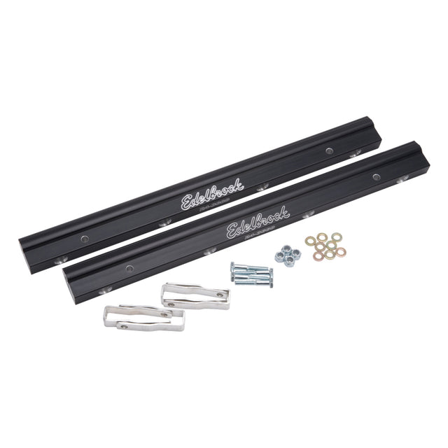 All Edelbrock fuel rails are machined from high quality extruded aluminum. Each kit includes fuel rails, stands and mounting hardware. Fuel fittings, crossover line and regulator not included. 3660 Chrysler Gen II 426-572 HEMI fuel rail kit is for use with Edelbrock Dual-Quad Manifold #75245. Rails will have a Black Anodized Finish and -8 AN inlet/outlets.
