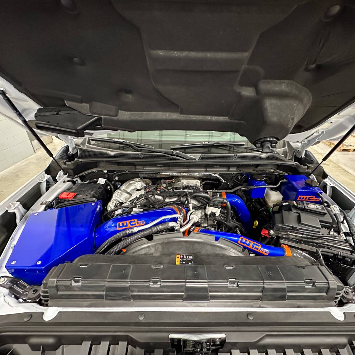 Upper Coolant Pipe for 2020-2025 L5P 6.6L Duramax equipped Chevrolet Silverado or GMC Sierra 2500 / 3500 truck replaces the ugly OEM rubber upper radiator hose with a fabricated aluminum hard pipe powder coated in your color of choice!For use with OEM GM radiator. Aftermarket radiators may cause fitment issues.