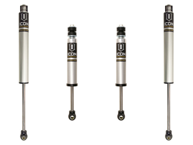 The 2001-2010 GM 2500HD/3500 requires significant shock damping to comply with the massive spring rate of the factory torsion bar system. ICON Vehicle Dynamics has developed a range of suspension systems with optimized vehicle specific shock damping. These systems offer excellent on and off-road drivability. While driving the construction site or trails to your favorite dirt bike location, ICON wants you to get there in comfort just like your drive to work. ICON's Stage 1 system is comprised of V.S. 2.0 Aluminum Series IFP front shocks and 2.0 Aluminum Series IFP rear shocks. The ICON vehicle specific tuned shocks are the key to attaining optimum ride quality and getting that desired comfort with the ¾ & 1-ton working capability.