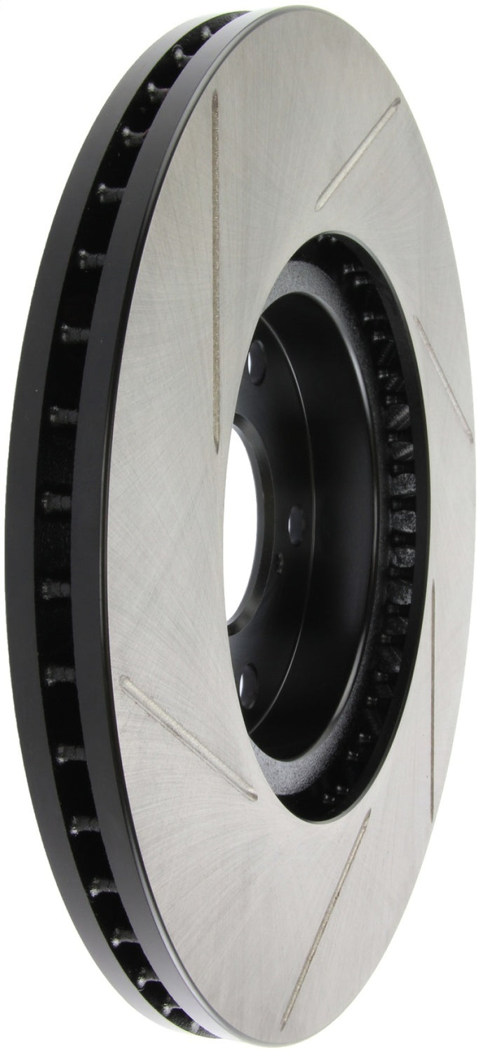 StopTech Slotted Sport Rotors are 1-piece direct replacement brake discs for factory brake systems and stock calipers that look great behind your wheels – and offer significantly improved braking performance. The unique slotting aids with heat and brake dust dispersal; prevents glazing of the pads; adds bite and improves wet and dry braking performance. Built to last; the black e-coating provides protection from corrosion and the high carbon metallurgy (in most applications) offers quieter operation; better crack resistance and increased performance.