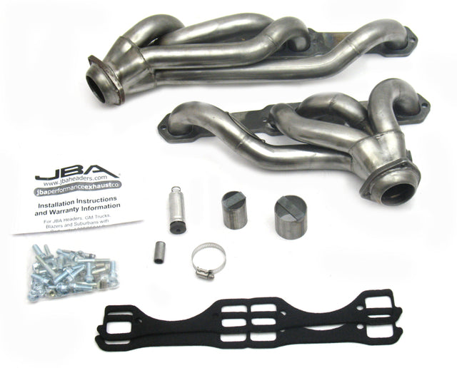 JBA shorty headers are one of the foremost performance upgrades you can bestow upon your beloved car, truck, or SUV. JBA Headers are significantly less restrictive than stock manifolds and dramatically increase the power and efficiency of your engine. Each header is constructed from durable stainless steel to endure the abuse of racing, towing, and daily driving – built to withstand it all. JBA’s proprietary Firecone collector design uses race proven technology for producing maximum power and torque gains where you drive most. Each system includes factory style emission connections and high-quality hardware for a professional no-leak installation.