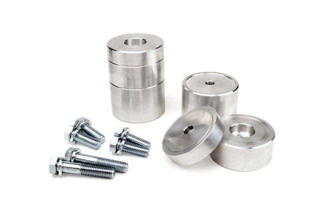 Increase your Jeep Wrangler TJ or LJ off-road performance with stackable rear bump stop spacers. This variable height landing pad spacer system ensures correct bump stop clearance for virtually any lift and tire combination. Includes three interlocking and interchangeable spacers. This solution allows you to tune for shock length, tire clearance, suspension bind and prevents damage to components from improper geometry. Conveniently allows for changes to bump stop clearance without removing coils from vehicle. It’s a practical upgrade for inferior bump stop extensions and fixed-length designs six possible length combinations - 0.75”, 1.25”, 2.00”, 2.75”, 3.25” 4.00”.
