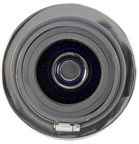 K&N Universal Air Filter Chrome Round Tapered Blue - 4in Flange ID x 1.125in Flange Length x 5.5in H