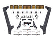 Included in the box: Two (2) Application-specific heavy-duty steel brackets for installation on 2007-2018 Jeep Wrangler. Eight (8) Stage Series 5inch LED Pods. Seven (7) CrossLinks with hardware. Two (2) CrossLink supports. One (1) CrossLink endmount kit. Six (6) Ultra heavy-duty CrossLink splitter. One (1) Ultra heavy-duty terminating splitter. One (1) Ultra heavy-duty single-output harness. Installation Guide.