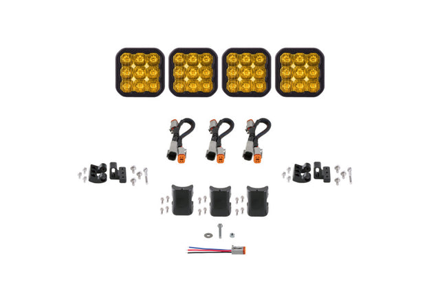 Diode Dynamics SS5 Pro Universal CrossLink 4-Pod Lightbar - Yellow Driving