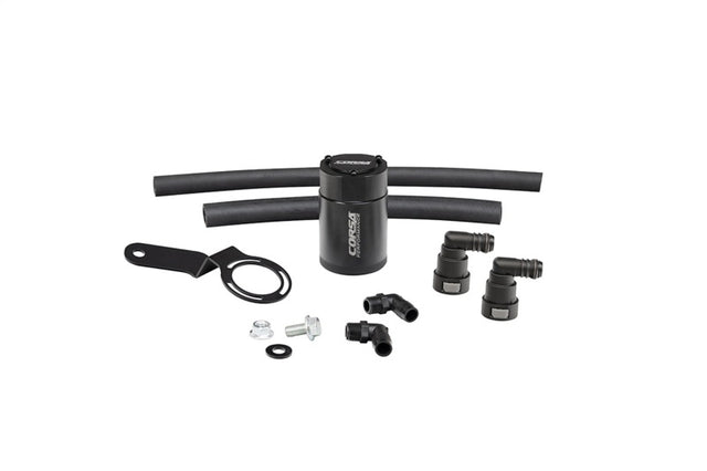 CORSA Performance's oil catch cans are the latest in a line of performance parts designed to maximize vehicle performance and longevity. Made from 6061 aluminum and featuring a multi-stage oil separation system, CORSA Performance oil catch cans work to eliminate blow-by of gas, water, oil vapors and particulates from the airpath. By reducing the impacts of blow-by, oil catch cans prevent damage to sensitive intake components and helps reduce carbon build-up on valves that over time reduce engine performance. Each vehicle specific oil catch can has been designed with OEM style quick disconnect fittings, premium automotive-grade hoses and upgraded components to ensure your vehicle runs at peak performance. Through careful design CORSA engineers have mounted each oil catch can in an easily accessible yet safe location allowing for ease of serviceability.