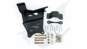 This kit is gusseted both top and bottom to give a solid center mount. There are two mounting options for the stabilizer. They can either be mounted below or above the center mount. This allows the kit to work on stock height trucks or above on lifted trucks to give the most possible ground clearance. This keeps the shocks away from road debris and obstacles. The outer mounts are built from heavy duty 3/8" plate to prevent them from deforming when tightening down the ubolts.