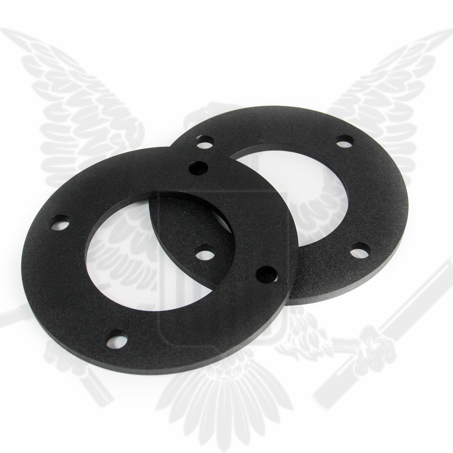 PMF 2005+ Ford F-250/350 1/4" coil spring spacer. These are laser cut 1/4" spacers that fit between your coil bucket and rubber spring isolator. They are stack-able to allow up to 1" of adjustment. They also have holes in them to allow them to be bolted to the coil bucket, although hardware is not included to do so and drilling would be required.