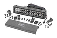 Command the Dark: Light up the night and stay on the trails longer with Rough Country's sleek 12-inch Dual Row CREE LED Light Bar. This powerful light bar offers 10,800 lumens of illumination and 120 watts of energy-efficient output, all housed in a stylish, modern frame. Featuring 24 high-intensity 5-watt CREE LEDs, it delivers superior brightness and durability for any adventure.The sleek black panel design complements vehicles with black accents, such as grilles, wheels, bull bars, or steps. Designed for all-weather performance, this light bar comes with a durable die-cast aluminum housing, ensuring maximum strength and heat dissipation. ItΓÇÖs also backed by an IP67 waterproof rating, providing reliable performance even in harsh conditions.This light bar contains 12 cool white daytime running LEDs for enhanced visibility and safety. Installation is made simple with the included premium, flat-wound wiring harness, complete with an on/off switch for easy operation. The light bar also features Rough Country's Light Bar Noise Silencers, designed to eliminate unwanted hums, whistles, and wind noise typically found in mounted LED light bars.This light bar includes both end mounts and adjustable base mounts, offering multiple mounting options for maximum versatility. A snap-on cover protects the lens, while Moisture Breather technology reduces moisture build-up inside the light. Plus, itΓÇÖs all backed by a 3-year warranty for peace of mind.
