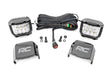 Command the Dark: Experience the latest in LED technology with Rough CountryΓÇÖs 3" Wide Angle LED Kit! Designed for off-road enthusiasts, these innovative LED cubes provide an unobstructed panoramic flood of LED illumination, ensuring unparalleled visibility on nighttime trails.Rough CountryΓÇÖs Wide Angle LED Kit features two high-performance 3-inch LED pods with a specially engineered panoramic design, delivering an extra-wide 140-degree flood pattern for maximum illumination. Equipped with top-of-the-line OSRAM LEDs, these units boast an impressive 13,500 lumens output!Built for durability, these all-weather lights come with an IP67 waterproof rating and a rugged, die-cast aluminum housing, ready to withstand the harshest conditions. Each kit includes a premium, flat-wound, braided wiring harness with inline fuse and on/off switch for seamless installation. Plus, enjoy peace of mind with a 3-year warranty!