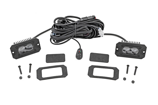 Cut Through the Fog with Confidence: When visibility drops in fog, snow, or heavy rain, Rough Country's 3x1.75-inch Black Series LED Slim SAE Fog Lights give you the clarity to stay in control. With a slim flush-mount design and powerful LED output, these lights deliver sharp visibility where you need it most, on or off the road.Brilliant White or Bold Yellow Output: Choose the beam that fits your needs. The White output delivers an impressive 4800 lumens per pair, while the Yellow option provides 4000 lumens per pair for enhanced performance in adverse weather.Street Legal & Road Ready: SAE J583 compliance means these fog lights aren't just for the trail, they're fully street-legal, giving you confidence to run them every day.Built for Extreme Conditions: Featuring an IP67 waterproof rating and Rough Country's advanced Moisture Breather technology, these lights are sealed against the elements while resisting lens fogging for long-lasting clarity.Strength You Can Trust: A rugged die-cast aluminum housing protects your lights from rocks, debris, and the toughest terrain. Backed by a 3-year warranty, they're built to perform mile after mile.Complete Installation Kit: Each pair includes a premium flat-wound wiring harness with an on/off switch, making installation simple and reliable.With Rough Country's 3x1.75-inch Black Series Slim SAE Fog Lights, you'll light up the road ahead and tackle the toughest weather without hesitation.