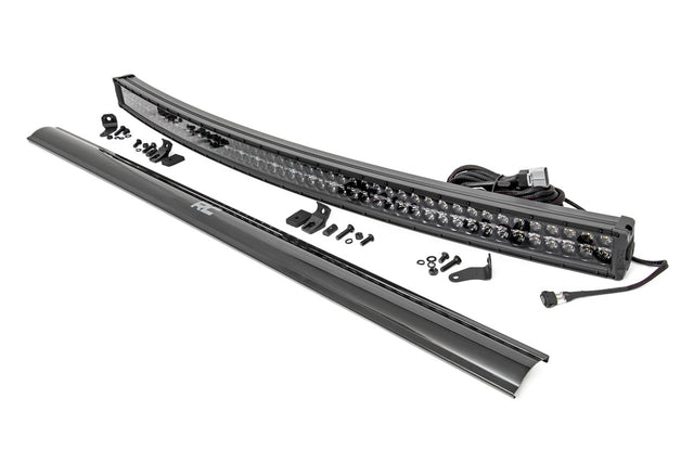 Command the Dark: Light up the night and stay on the trails longer with Rough Country's sleek 54-inch Curved Dual Row CREE LED Light Bar. This powerful light bar offers 46,800 lumens of illumination and 500 watts of energy-efficient output, all housed in a stylish, modern frame. Featuring 104 high-intensity 5-watt CREE LEDs, it delivers superior brightness and durability for any adventure.The sleek black panel design complements vehicles with black accents, such as grilles, wheels, bull bars, or steps. Designed for all-weather performance, this light bar comes with a durable die-cast aluminum housing, ensuring maximum strength and heat dissipation. ItΓÇÖs also backed by an IP67 waterproof rating, providing reliable performance even in harsh conditions.This light bar contains 52 cool white daytime running LEDs for enhanced visibility and safety. Installation is made simple with the included premium, flat-wound wiring harness, complete with an on/off switch for easy operation. The light bar also features Rough Country's Light Bar Noise Silencers, designed to eliminate unwanted hums, whistles, and wind noise typically found in mounted LED light bars.This light bar includes both end mounts and adjustable base mounts, offering multiple mounting options for maximum versatility. A snap-on cover protects the lens, while Moisture Breather technology reduces moisture build-up inside the light. Plus, itΓÇÖs all backed by a 3-year warranty for peace of mind.