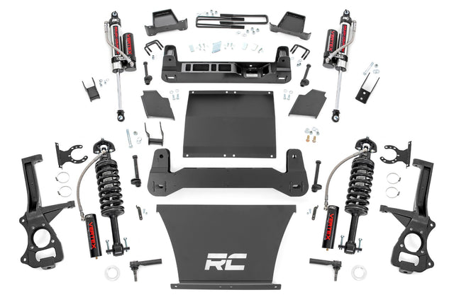 Transform your fifth-generation GMC Sierra 1500 with Rough Country's 6-Inch Suspension Lift Kit, engineered to elevate both your stance and your off-road prowess. Designed to complement the truck's aggressive factory styling, this all-in-one lift solution delivers a bold, leveled look and the clearance needed to run 35x12.50 tires on 10-inch wide wheels.Front-to-Rear Lift & Leveling: Gain a clean, aggressive stance with improved ground clearance for better trail performance and street presence.Precision Engineering, Off-Road Ready: This kit features a high-clearance crossmember that maintains optimal suspension geometry while maximizing off-road capability. Extreme-duty cast knuckles and heavy-duty fabricated blocks provide rugged durability built to endure the harshest driving conditions.Factory Fitment, Simplified Install: Enjoy a bolt-on installation that requires no strut disassembly and no differential trimming, saving you time and preserving the factory integrity of your Sierra. The laser-cut, CAD-designed components ensure a perfect fit and unmatched strength.Retains Stock Handling & Compatibility: With factory track width maintained, you keep the truck's original handling characteristics while minimizing wear and tear. This kit also works with all Rough Country shock/strut options, from nitrogen-charged N3s to the premium Vertex reservoir, so you can tailor your ride to your driving needs.Every kit includes front and rear crossmembers, a durable skid plate for enhanced chassis strength, and Rough Country's Limited Lifetime Replacement Guarantee for complete peace of mind.
